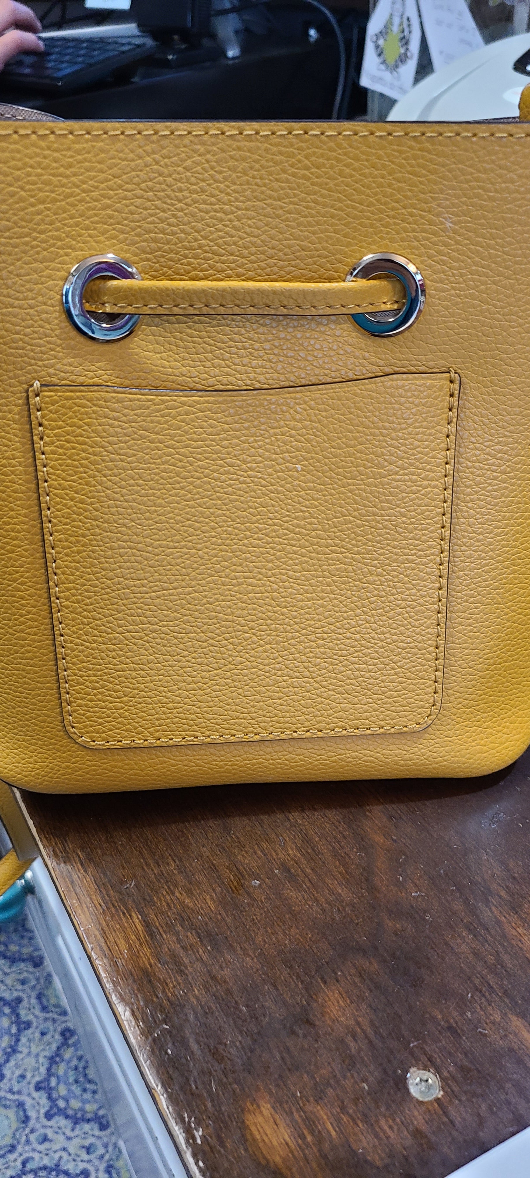 This small bucket handbag by Kate Spade is expertly crafted with high-quality materials. Its sleek design and durable construction make it perfect for everyday use. The spacious interior and multiple pockets provide ample storage for all your essentials. Upgrade your handbag game with this stylish and functional option.